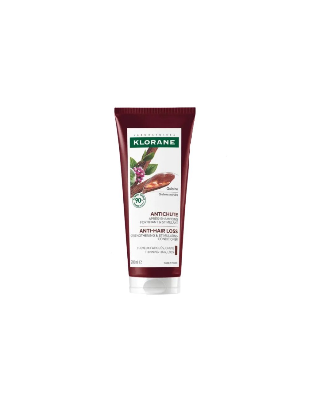 Klorane Anticaída Acondicionador Quinina es un acondicionador que combate la caída del cabello y recupera su densidad y volumen con el Acondicionador anticaída fortificante & estimulante a la Quinina medicinal. Frena la caída del cabello, reduce su rotura en un 61% desde el primer uso y le aporta volumen y fuerza al cabello.
