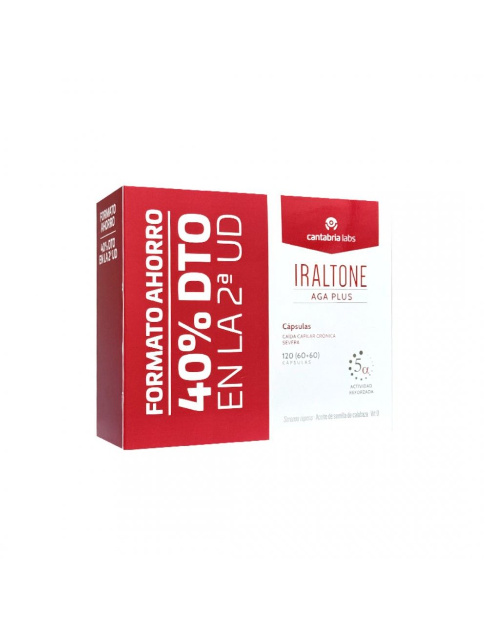 Iraltone Aga Plus Duplo 60+60 capsulas manejo de la caída capilar crónica severa.