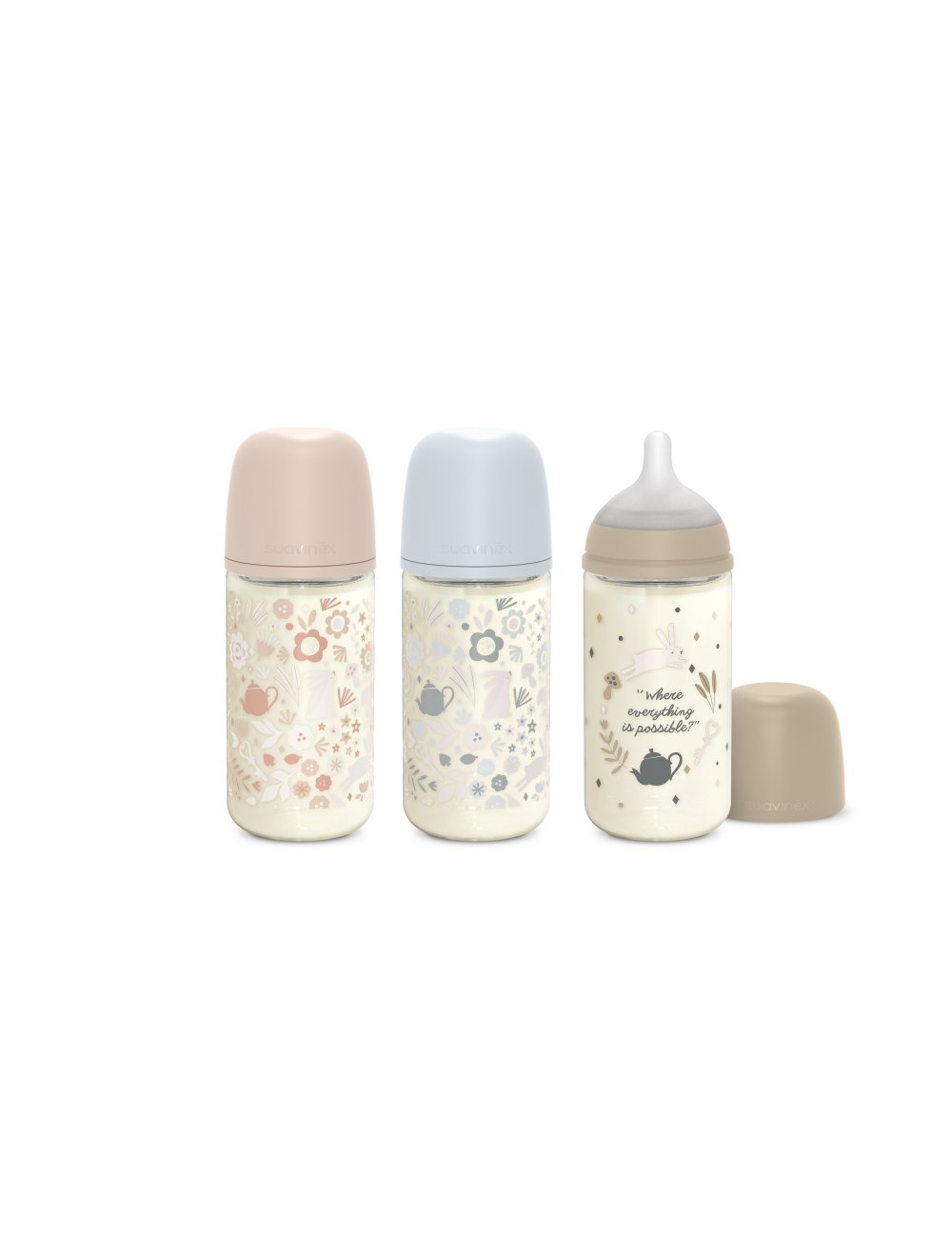 Suavinex Biberon Vidrio Boca Ancha Tetina Redonda 240ml botella 100% reciclable. No absorbe olores, ni sabores de los alimentos.