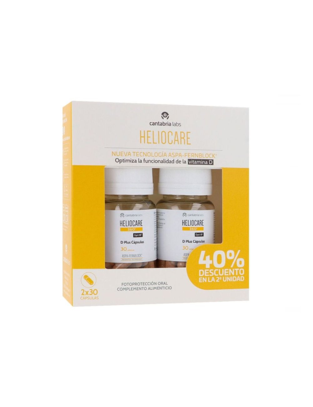 Heliocare 360 Duplo D Plus 2x30 caps cápsulas de Protección solar oral con vitamina D para periodos de exposición intensa, pieles muy claras, sensibles o alérgicas al sol.