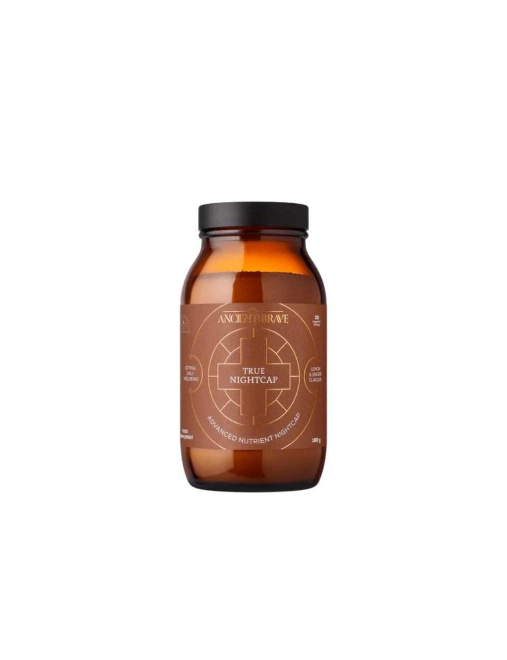 Ancient + Brave True Nightcap Rest Ritual es una fórmula rica en nutrientes y cuidadosamente seleccionada de ingredientes esenciales que apoyan el cuerpo desde los neurotransmisores hasta el sistema nervioso, formulado para promover un sueño reparador y rejuvenecedor.
