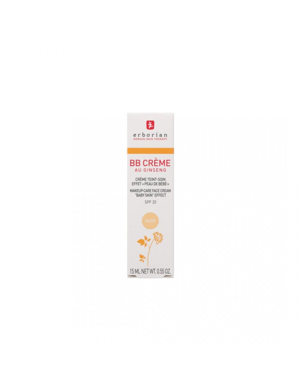 Crema BB Creme de Erborian en tono Nude con Centella Asiática que aporta luminosidad a la piel al mismo tiempo que la unifica y perfecciona. Es ideal para todo tipo de pieles y gracias a sus pigmentos encapsulados se adapta a todos los tonos. Con SPF 25, es la combinanción perfecta entre tratamiento y maquillaje.