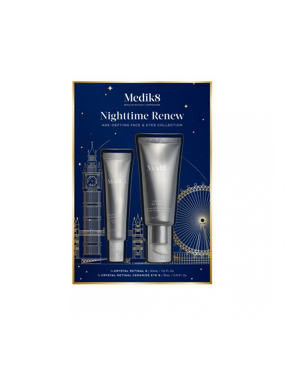Medik8 Cofre Nighttime Renew descubra resultados notables que desafían la edad tanto para el rostro y la delicada zona de los ojos.