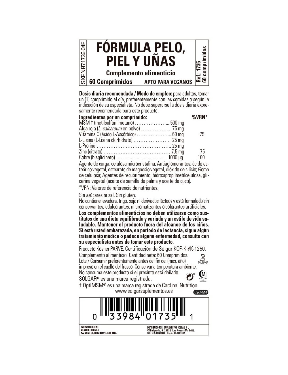 Apto para vegetarianos, veganos, kosher y halal.